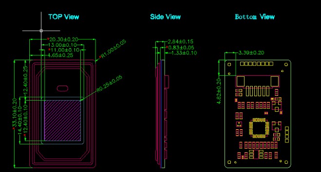 指紋芯片與算法芯片是通過高速的 SPI 接口通信,產品與外部設備可以通過一個 6Pin 1.25mm 間距標準連接器連接,通信方式是 UART。TLK3A 是深圳迪安杰智能識別獨立研發的電容式指紋模組,模組軟件、硬件都具有完整自主知識產權。