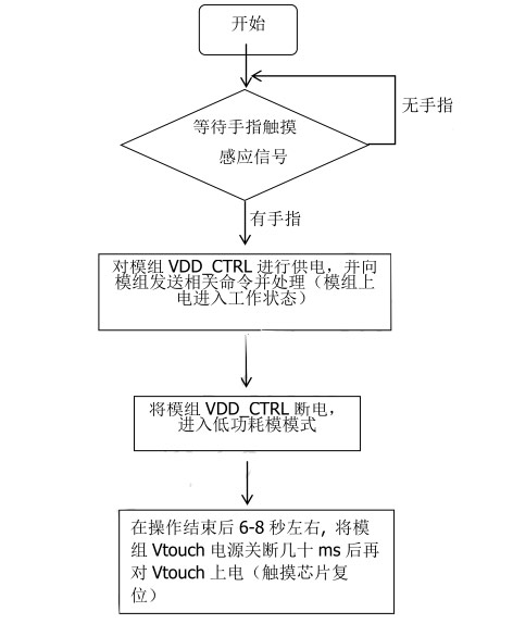 通過此電路控制 VDD_CTRL 電源的通斷時(shí)間可以實(shí)現(xiàn)低功耗,當(dāng) VDD_CTRL 電源被關(guān)斷,此時(shí)只有觸摸喚醒電路工作,功耗小于 3uA; 為了確保模組觸摸喚醒功能正常,需要在模組 VDD_CTRL關(guān)斷(進(jìn)入低功耗)后對(duì)觸摸喚醒部分做復(fù)位操作